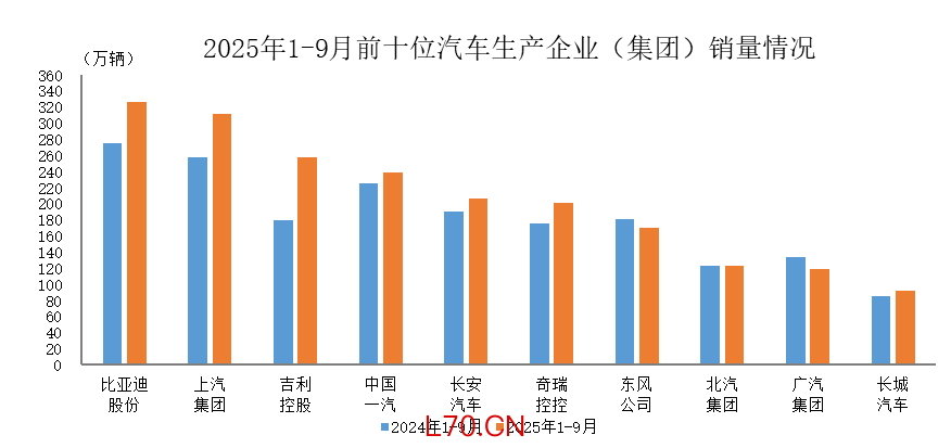 1-9月汽车销量排名前十位的企业(集团)共销售2043.1万辆
