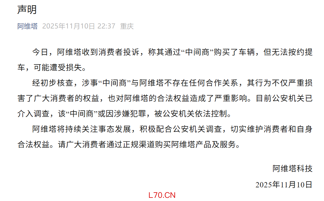 通过“中间商”买车无法按约提车?阿维塔回应