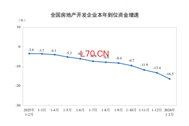 国家统计局:1—2月份,房地产开发企业到位资金同比下降16.5%