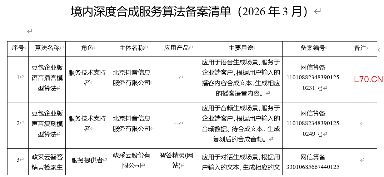 国家互联网信息办公室发布第十六批深度合成服务算法备案信息