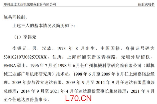 但是这里面有一个细节,力场君值得说一说,针对公司的实际控制人李锡元,就是最近刚被留置的那位,招股书中披露的职业经历涉及广州机械科学研究院有限公司、上海嘉诺总经理、速达股份等,并未提及其在郑煤机这个曾导致IPO失败的关联方有任职。
