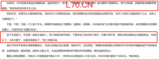 这篇报道的主体则是“郑州煤矿机械集团”,直到现在,仍能在河南省人民政府网站上看到。至于报道报道中提及的“职工李锡元”,是不是速达股份的实际控制人、董事长李锡元?力场君也不能下结论,或许是巧合的重名也说不定呢?