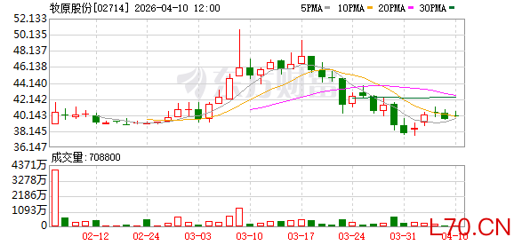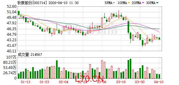 4月10日,牧原股份在A股的午间收盘价报43.24元/股,跌1.28%;其在港股的午间收盘价报40.06港元/股,涨1.01%。