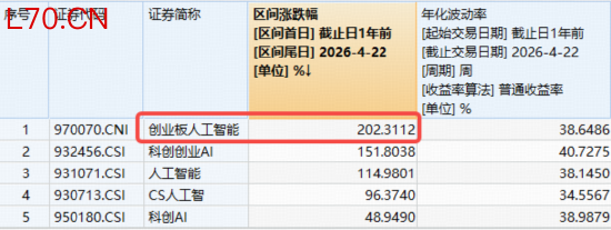 时间拉长看,近期光模块CPO、算力租赁、AI应用轮番上阵,创业板人工智能继续领跑其他同类AI主题指数!截至4月22日,高“光”创业板人工智能ETF华宝(159363)标的指数近1年累计涨幅高达202%,大幅跑赢全市场同类AI主题指数,持续超额表现!